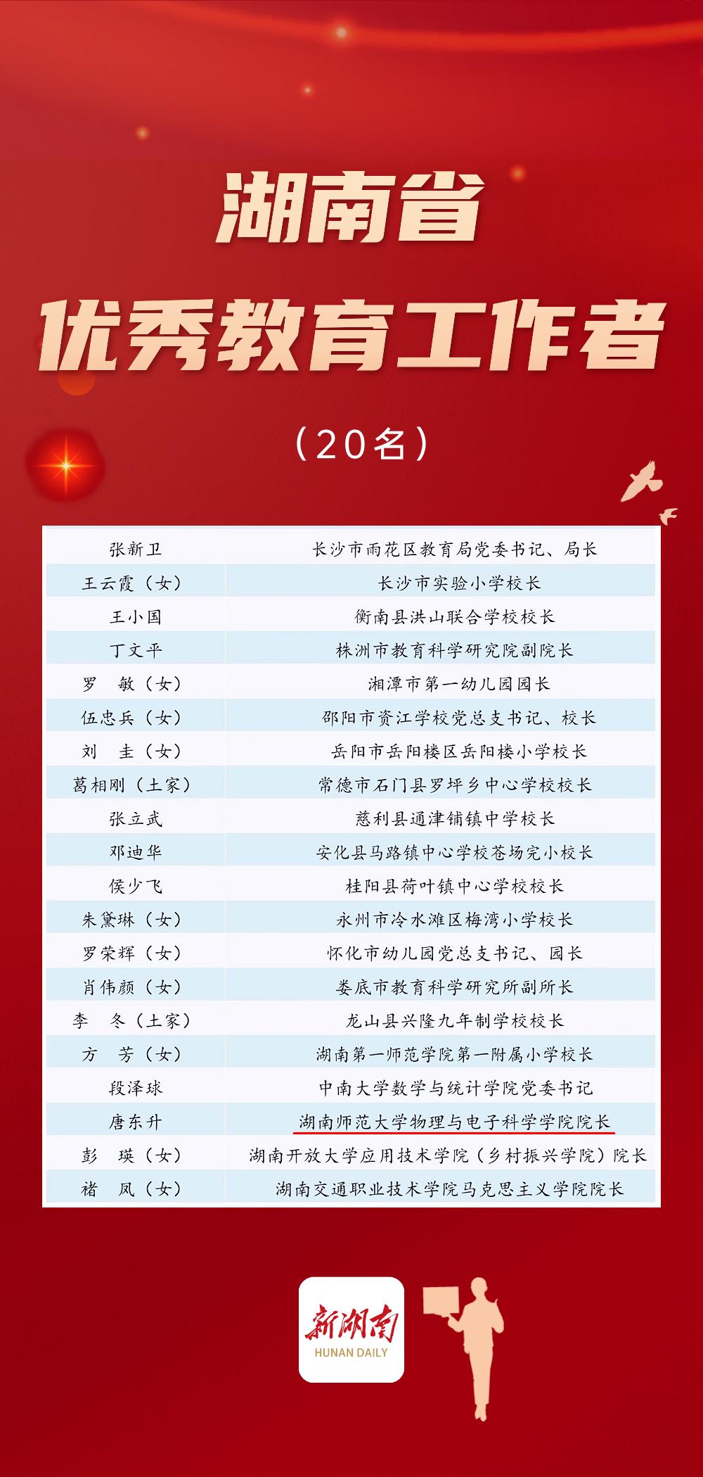 【教书育人】唐东升教授荣获“湖南省优秀教育工作者”荣誉 |