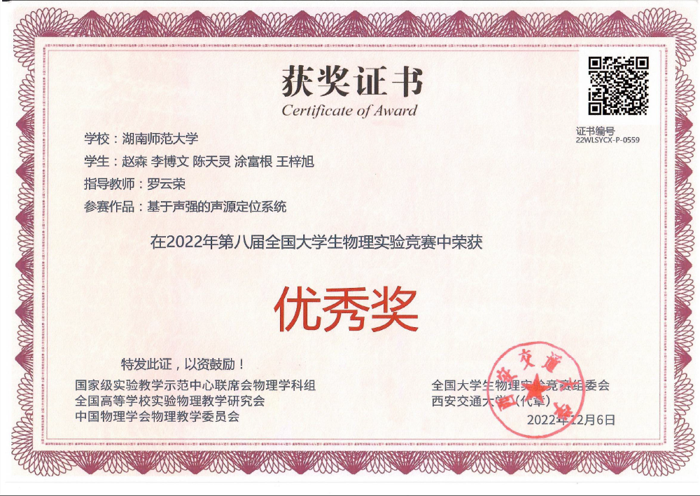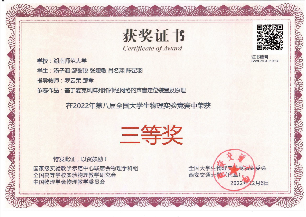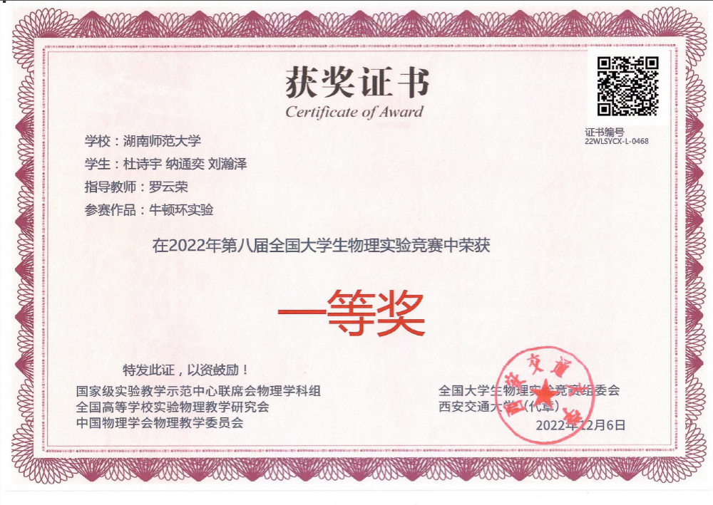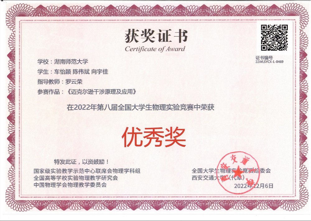 2022年第八届全国大学生物理实验竞赛获奖