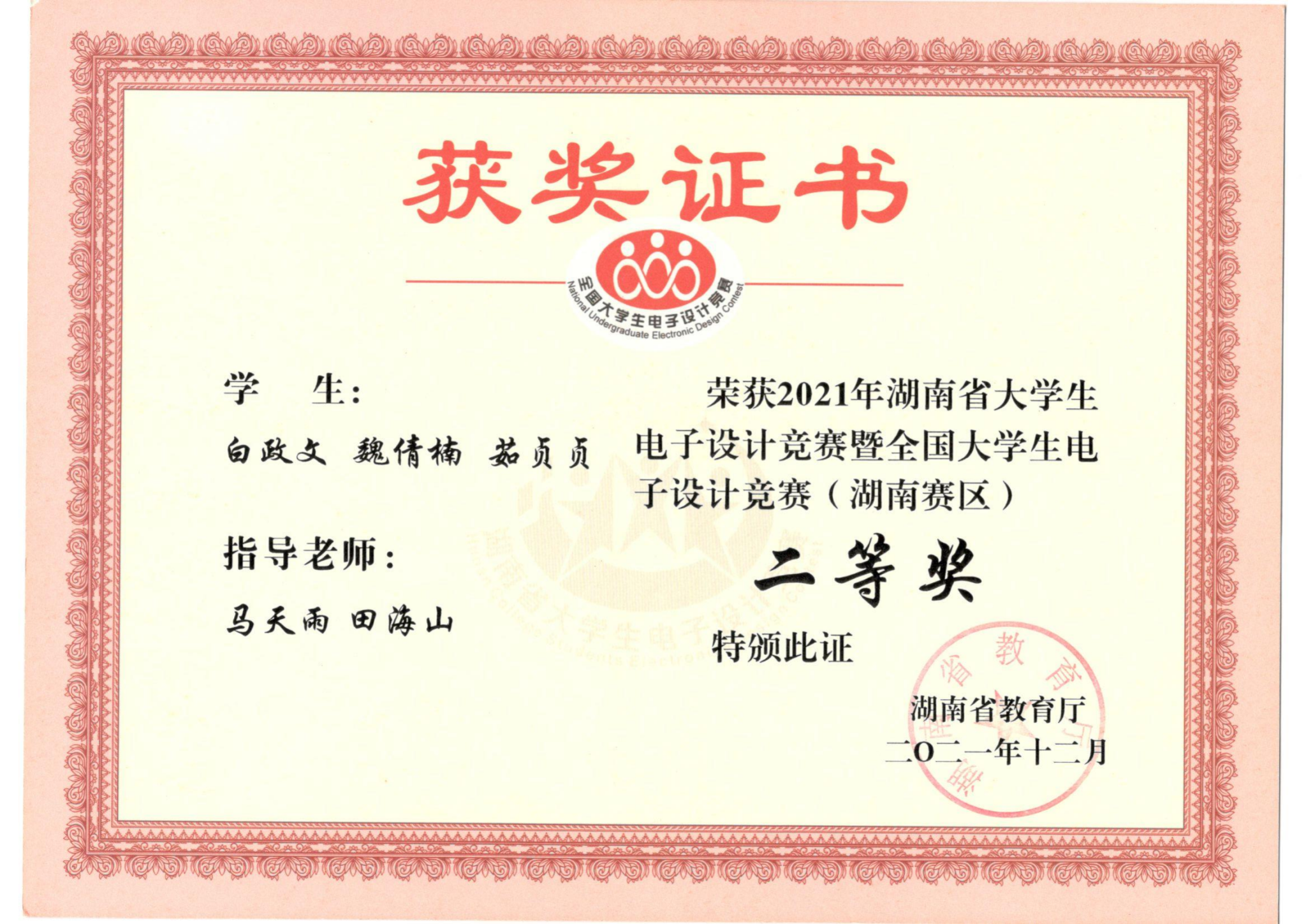 2021年湖南省大学生电子设计竞赛获奖