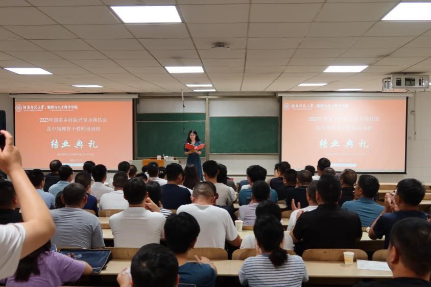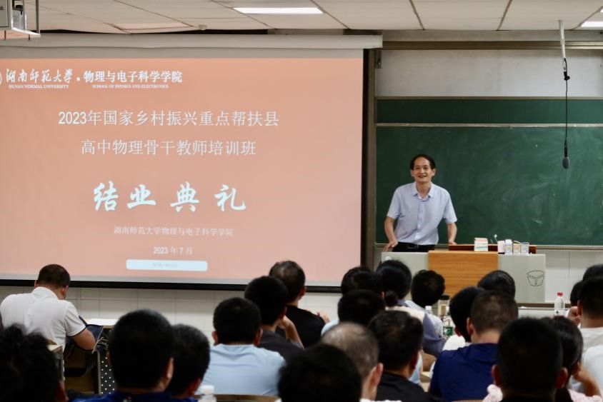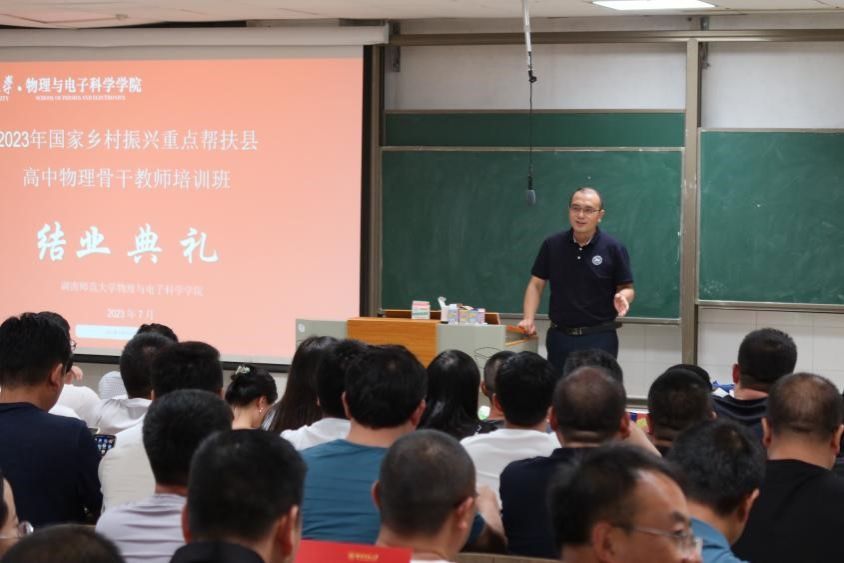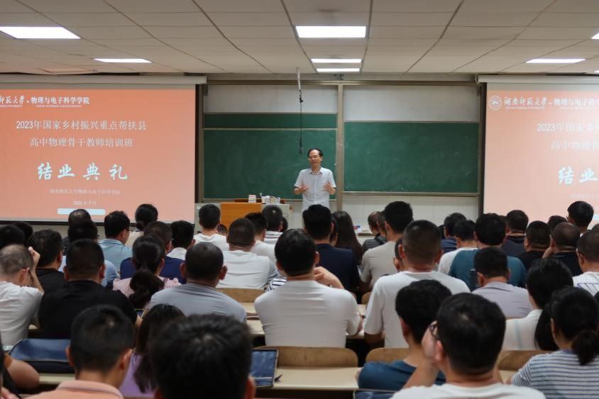 (通讯员 罗瑞霞 马前春)7月28日,2023年国家乡村振兴重点帮扶县教育人才“组团式”帮扶项目湖南师大高中物理教师培训班举行结业典礼。bv伟德国际1946党委副书记郭铭伟,培训班首席执行专家刘健智教授出席会议。