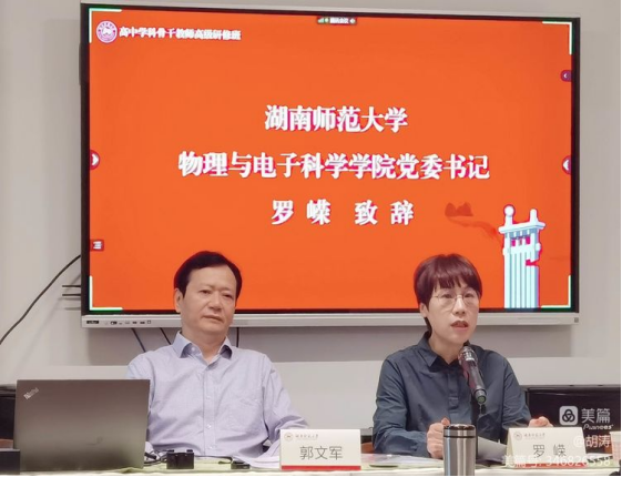 罗嵘书记致欢迎辞。她对本次研修班的顺利开班表示祝贺,对全体远道而来的学员们表示诚挚的欢迎,她介绍了我院的办学历史、学科建设和人才培养等方面的情况,并对全体学员提出了几点期望。一是要通过培训提高站位,从习近平总书记在党的二十大所作的工作报告中,充分认清新时代办好人民满意教育的重大意义、核心要义和实践要求,为全面建设社会主义现代化国家、全面推进中华民族伟大复兴做出应有的贡献。二是学员们要珍惜此次研修机会,我院精心安排了这次研修班的课程,既有重庆市的专家讲座,能使学员们的教学理念得到提升,又有重庆市中学同行的交流实践,感受新高考和新课改的精神,同时还组建了服务意识强的项目团队为大家服务。三是严守纪律,明确研修的严肃性,严格以学员身份要求自己,展现我省高中物理骨干教师的良好风貌。四是认真听取专家讲座,并做到理论联系实际,切实提高研修效益,带着问题听课,针对问题进行研讨,研修学员要利用此次研修平台,相互学习,取长补短,共同提高。五是学以致用,要注意把学到的理论和技能运用到实践中去,与教学相结合,形成自己的做法和经验,真正让研修落到实处收到实效。学员代表熊智平老师发言表示:非常珍惜本次研修机会,在接下来的时间里,将会认真学习,提升自身教学水平。
