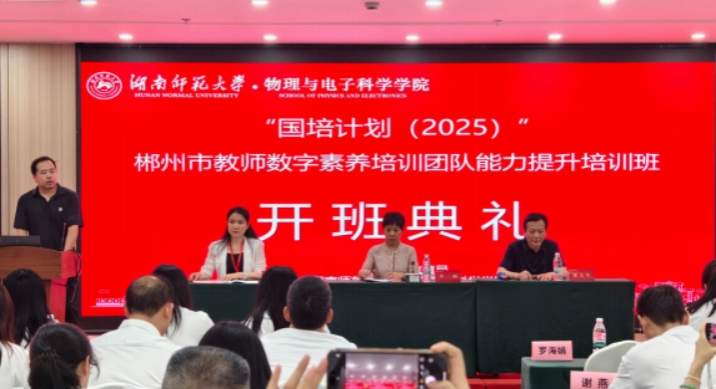 湖南师范⼤学物理与电⼦科学学院党委书记罗嵘致辞,她强调,在"教育数字化"国家战略背景下,教师数字素养已成为新时代教育者的核⼼能⼒。要带着问题学、带着任务练, 且应具有厚植教育报国的⼤情怀,共同书写教育强国,强师有我的时代答卷。来⾃永兴县教育教学服务中⼼的雷燕主任作为学员代表发⾔,⽤"三个感谢"道出全体学员⼼声:感谢主办单位及承办单位搭建成⻓平台,感谢专家团队传经送宝, 感谢同仁互助共进。本次培训⾸席专家罗海娟⽼师,以"数字化转型中的教学突围"为主题,提出"三实"培训要求:实践导向强化操作能⼒,实验教学促进技术迁移,实效评估保障成果转化,要求学员每⽇就课程内容进⾏反刍,结业时完成"三个⼀"任务。