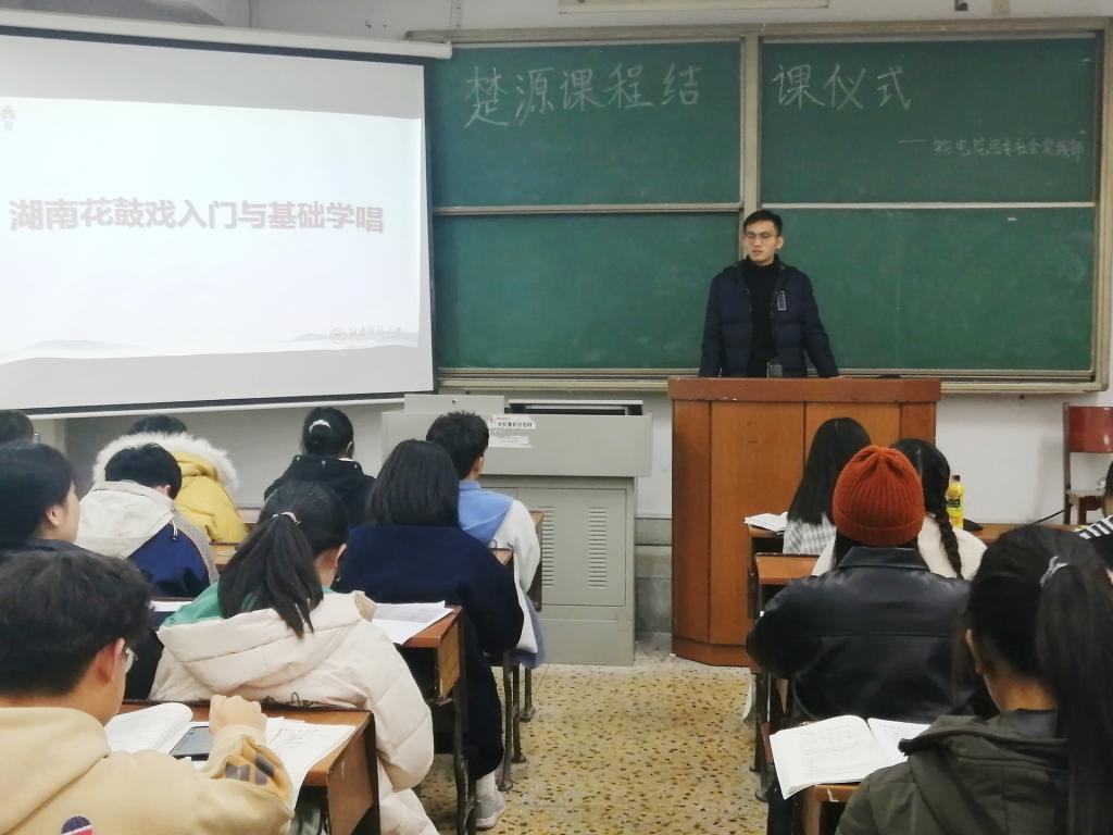 11月25日晚,物电院第38期楚源课《湖南花鼓戏入门与基础学唱》结课仪式在格物楼108教室举行,课程任课教师黄维、课程