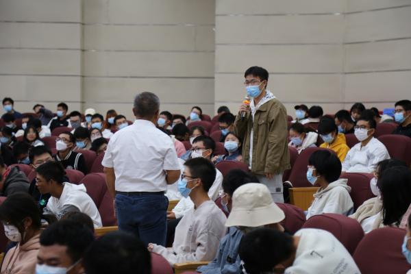 (通讯员李俊贤)10月6日晚,物电院知行团校暨2022级新生成长第一课于学校国际学术报告厅举行。校友总会副秘书长贺慧星,物电院教授匡乐满,院长唐东升,党委副书记郭铭伟出席讲座。物电院1977级校友贺浪萍教授担任主讲人。