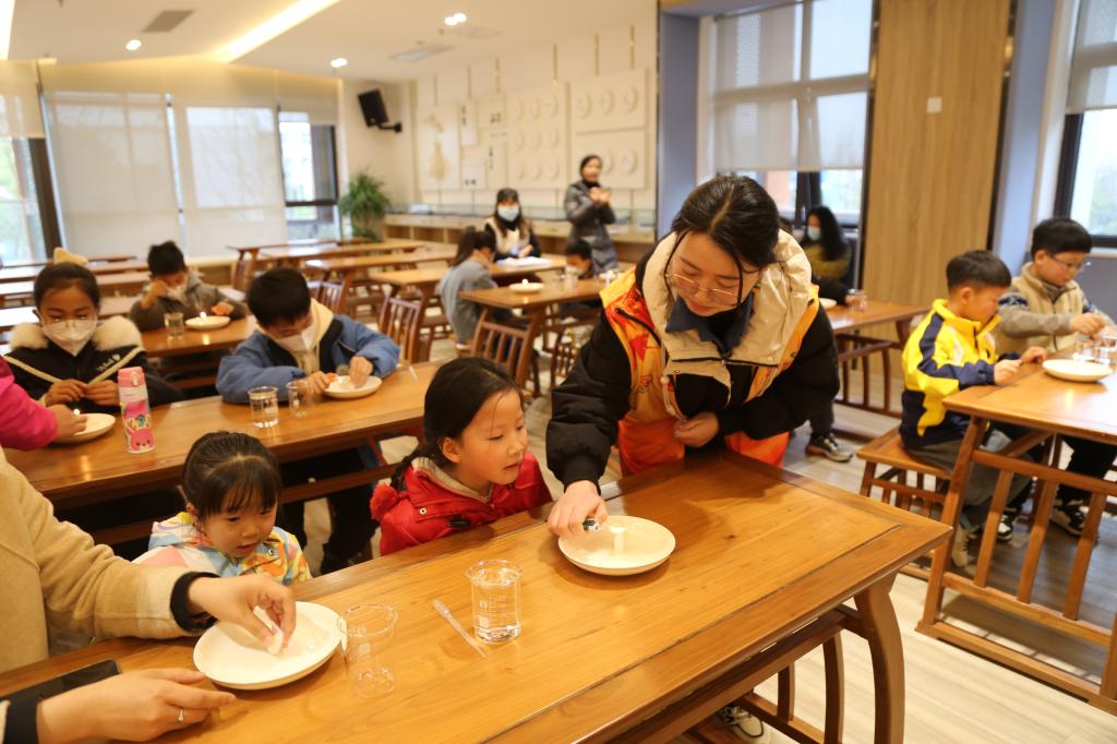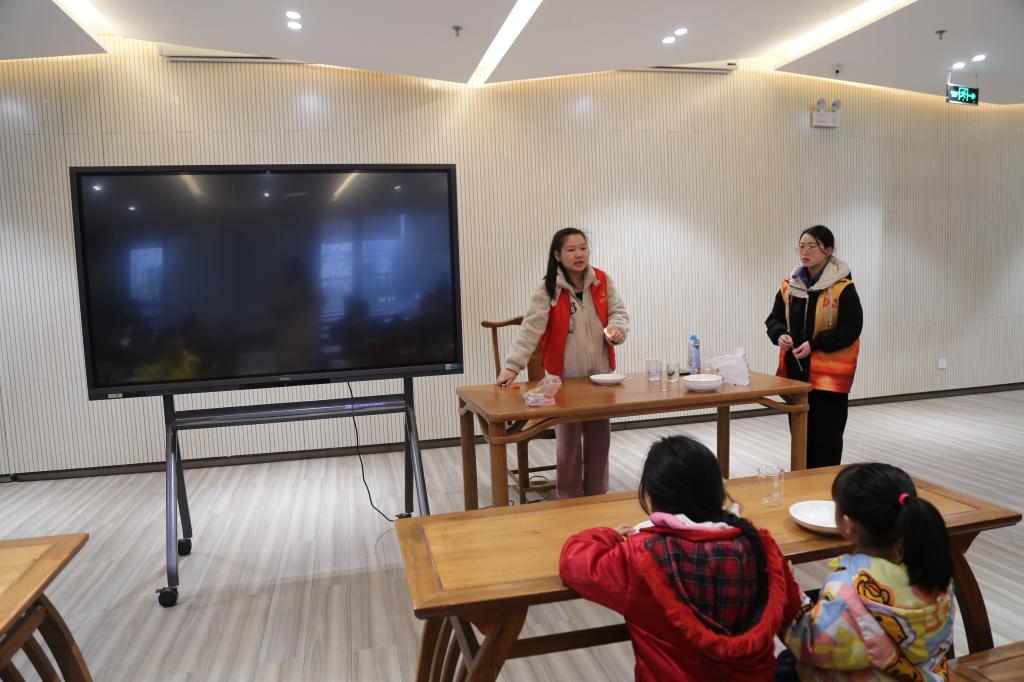 志愿者帮助小朋友做实验