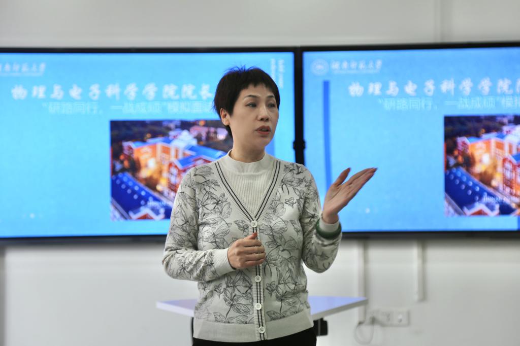模拟面试过程中,2019级光召班廖明华、2019级师范物理班周芷若、2019级电子班王雪松依次上台进行英语自我介绍并完成两道必答题和一道选答题。教授们根据同学们的自我介绍和回答,对三位同学的表现作出了专业视角的点评与指导意见。教授们从自我介绍提升、简历亮点凸显、学术话语表达、个人仪态展现、面试注意事项等方面阐释了自己的见解,并帮助同学们梳理知识脉络、掌握提问特征、了解展示重点、提高面试技能。