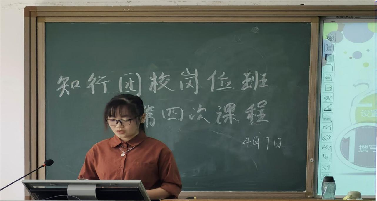 (通讯员 银锴)4月7日中午,bv伟德国际1946于格物楼219教室举办第五期知行团校岗位班第四次课程,21级公费班团支书潘静担任本次课程主讲人,岗位班学员李广开主持此次课程。