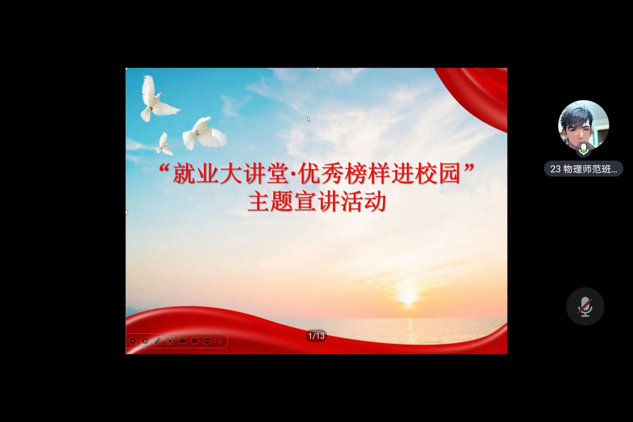 (通讯员 王贻菲)为引导同学们树立正确的就业观与择业观,用实际行动去拥抱自己的美好未来,11月17日晚,bv伟德国际1946(以下简称“物电院”)团委区校共建部于线上举办“大学生就业引航活动季”活动。物电院2020级本科生颜明伟担任主讲人,2022级、2023级部分学生参加会议。