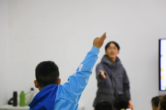 志愿者们带领小朋友们有序进行签到落座,并在随后的授课过程中协助主讲人维持现场秩序。粟畅通过PPT授课的方式教给小朋友们简便的运算方法和速算技巧,从而提高他们的速算能力。他与小朋友们多次互动,并不断鼓励小朋友们自主思考,积极回答问题。在他的鼓励下,小朋友们争先举手上台解题,分享自己的解题方法。此外,他还通过例题演示的方法加深小朋友们的理解,并通过习题训练的方式检验小朋友们对所学方法的掌握程度。