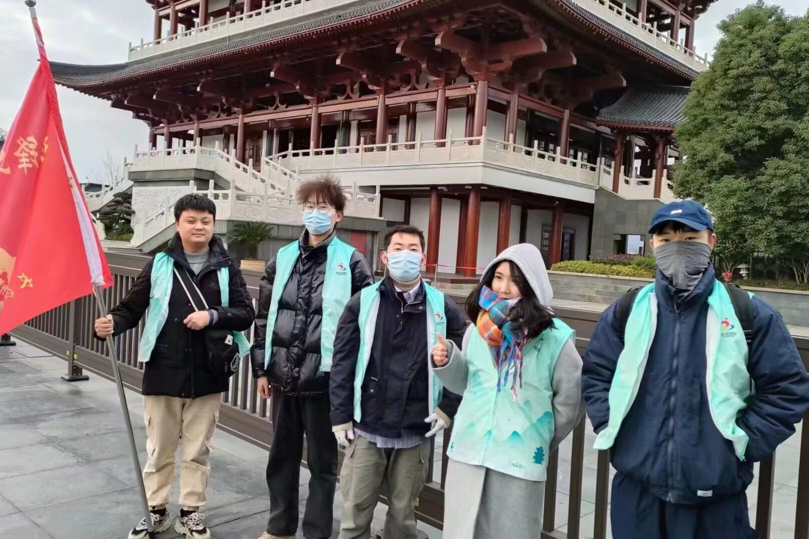 志愿者们在杜甫江阁集合合影