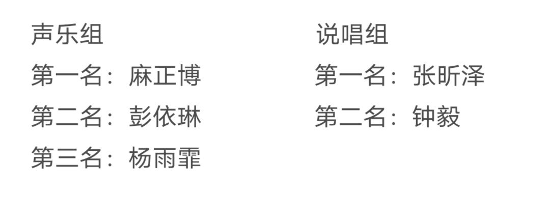 此次大赛分为初赛、复赛、决赛三个部分,设有声乐、说唱两个赛道。参赛选手可根据个人偏好与自身特长灵活选择赛道。初赛阶段,各选手采用清唱的方式进行表演,评委团也及时跟进,现场评分。保证大赛公平性。复赛与决赛中,选手则灵性发挥,结合各种乐器与视频背景展现风采,在丰富比赛内容的同时,也展示出我校学子多才多艺的形象特点。决胜环节中,说唱组排名前二与声乐组排名前三的选手按照PK的形式分别进行各个赛道的第一与冠亚军争夺战,并以评委评分与大众评审为标准得出最终成绩。在激烈的角逐下,声乐组麻正博与说唱组张昕泽获得比赛冠军。