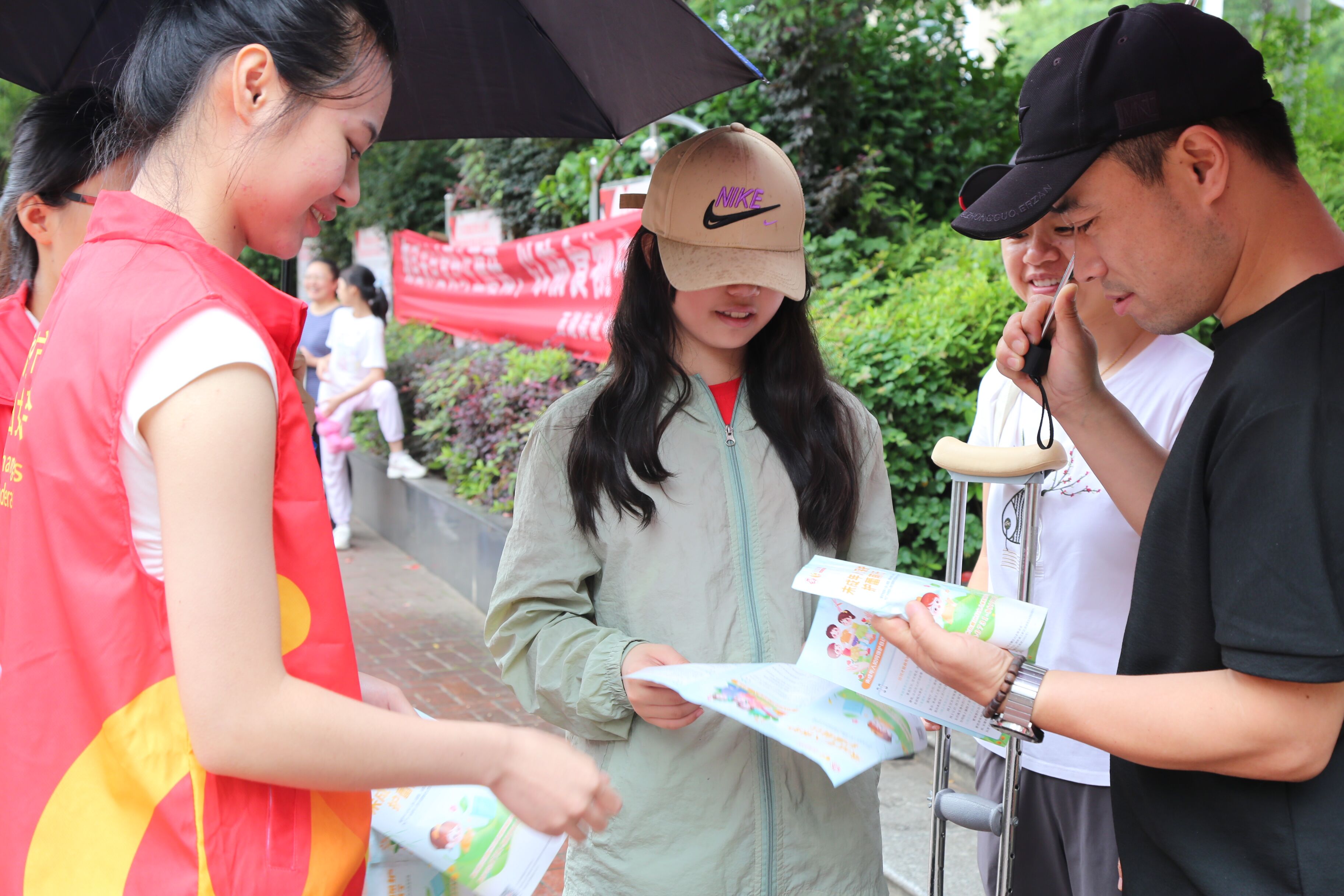 组织孩子们签到后,志愿者们讲解游戏规则并帮助孩子们组队进行游戏。游戏分为个人赛和团体赛两个部分,其中个人赛设置有“摸石头过河”、“巧吹乒乓球”、“垃圾分类飞行棋”、“投壶”和“套圈圈”五个环节,由孩子及其家长配合完成。团体赛设置有“不倒森林”和“传呼啦圈”两个环节,孩子们需要以组为单位进行比赛,并根据队伍总得分的多少决定相应奖励。在游戏结束后,志愿者们还向孩子们与家长们分发“未成年人保护”传单,向家长们宣传保护未成年人的方法,向孩子们宣传遇到危险时自救的方法。