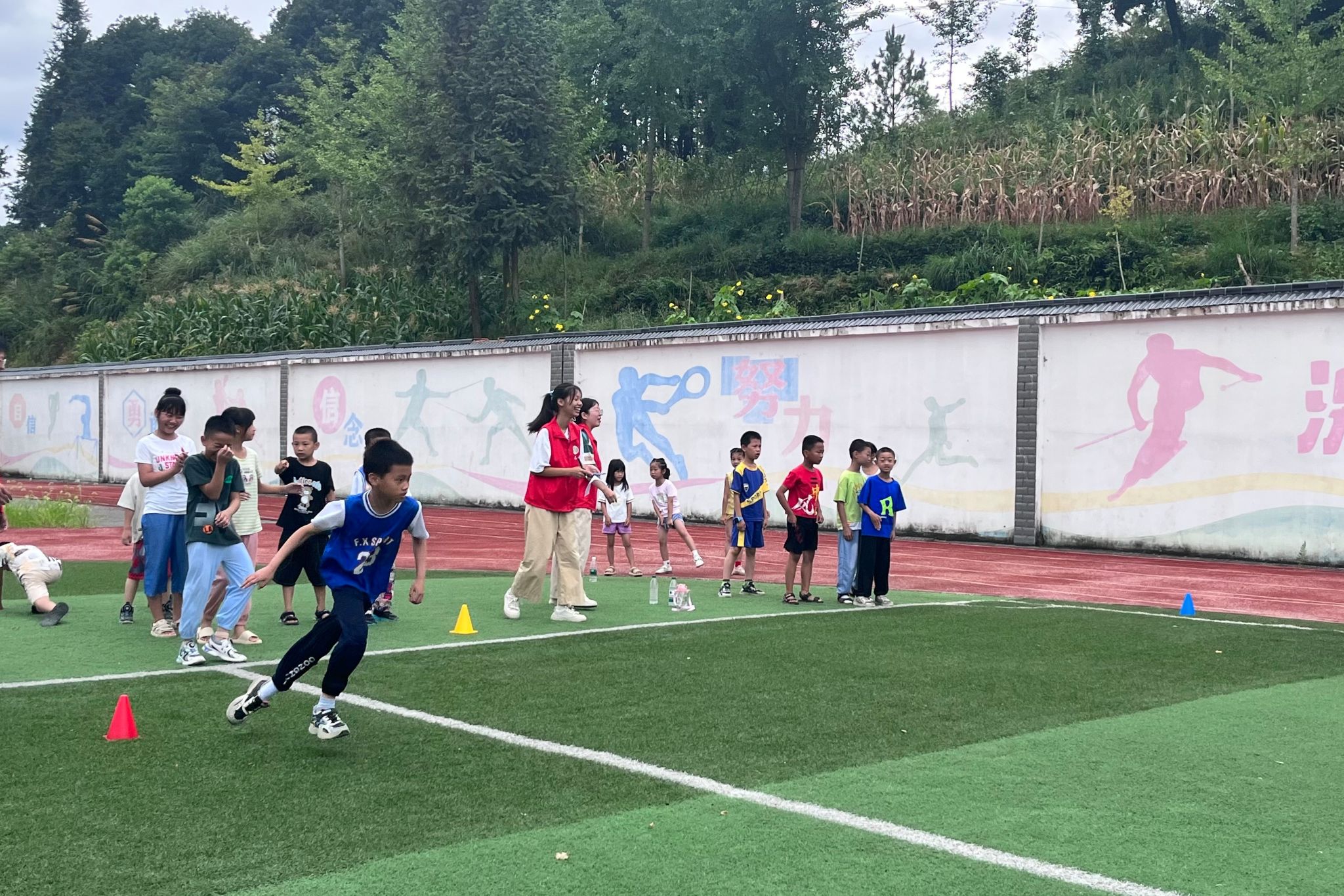 此次趣味运动会形式灵活、内容丰富,有个人项目和集体项目共计6项比赛。投沙包、袋鼠跳和背对背夹球跑锻炼学生的身体协调能力;障碍跑考验学生的反应力和爆发力;迎面接力跑和集体跳绳则培养学生的团队协作能力。运动会进行过程中,支教队队员积极配合、协调管理会场秩序,为学生提供一个展现自我、挑战自我的平台,带领学生安全快乐进行比赛。