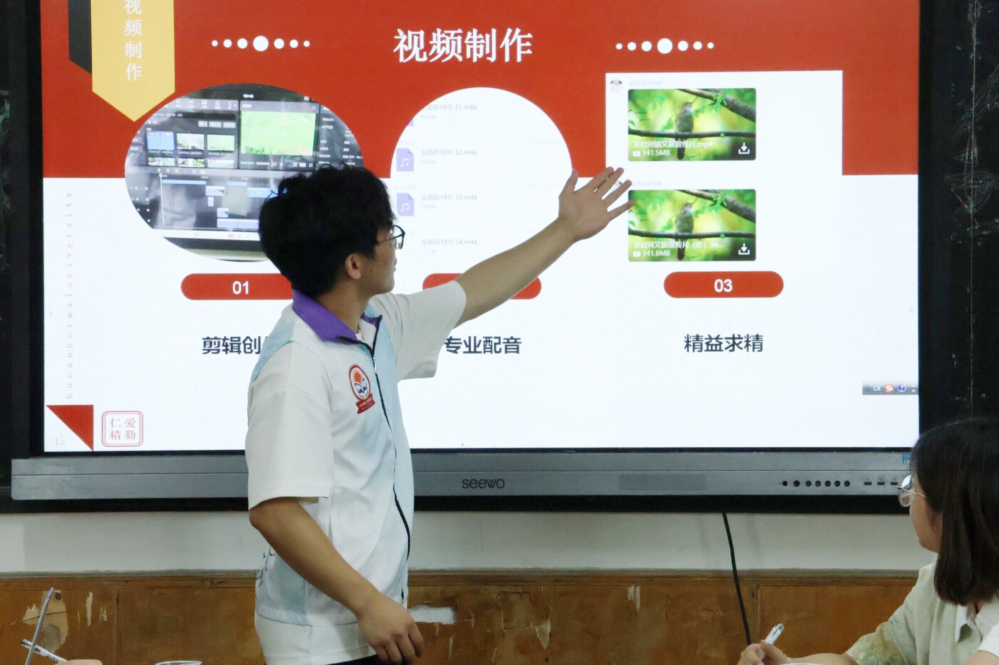服务队队长唐亮向学校与茅岩河镇对三下乡活动的大力支持表示感谢,他回顾了服务队在此次活动的初期、中期以及后期的工作,并着重介绍了队伍的调研成果与宣传成果。唐亮表示,茅岩河镇有着无限可能,希望“筑梦夏乡”志愿服务队的工作可以为茅岩河镇的发展提供动力。发言结束后,唐亮向茅岩河镇政府工作人员展示宣传片拍摄成果。