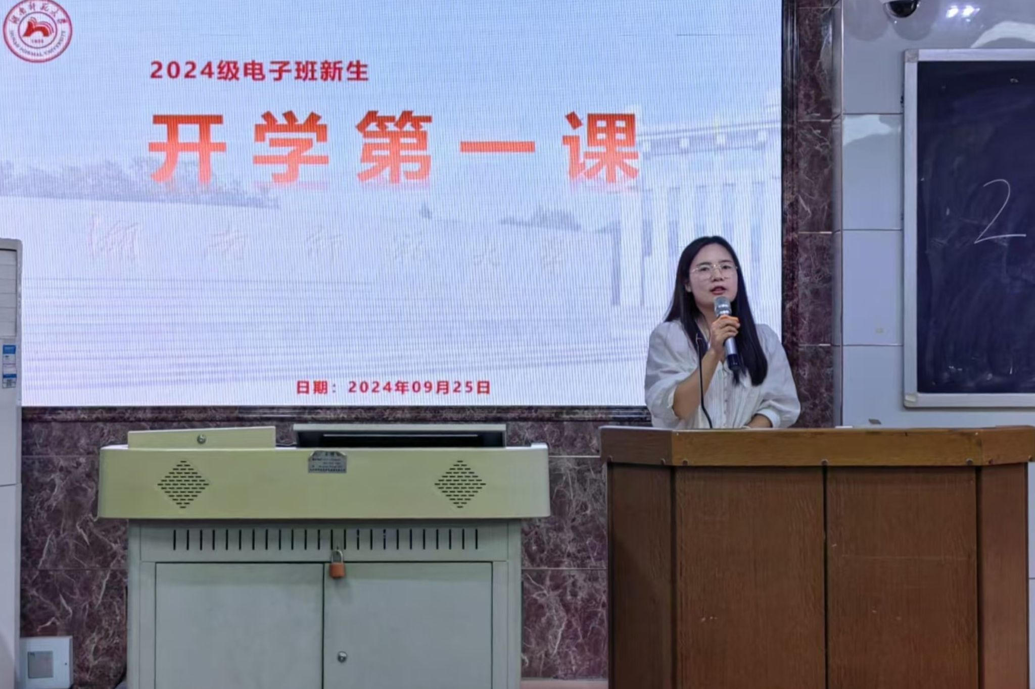 (通讯员 黄浩男)9月25日晚,bv伟德国际1946(以下简称“物电院”)2024级电子班于格物楼109教室开展新生专业教育讲座。电子班班导师唐娇主持会议。物电院2024级辅导员戴文纯、物电院电子系教授金湘亮出席讲座。