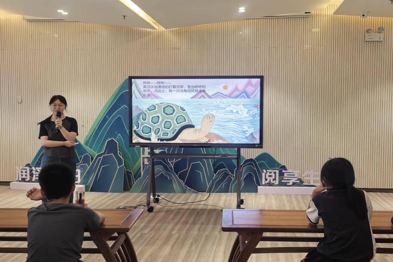 读书会开始前,志愿者们引导小朋友有序入座、签到,为读书会的开展营造了良好的氛围。活动过程中,主讲人通过动画放映吸引小朋友的兴趣,以通俗易懂的语言讲述大禹治水的故事,并在讲述过程中插入问题,鼓励小朋友们积极思考、联想。故事讲解完毕后,主讲人留下问题,让小朋友们思考大禹是一个怎样的人,以便更好理解这个故事所蕴含的道理、精神。在志愿者耐心地指导和鼓励下,小朋友在已给出图画的基础上,结合自己对故事的理解,在纸上画下了大禹治水的场景。活动的气氛在此时变得更加活跃,也增强了小朋友的动手能力。