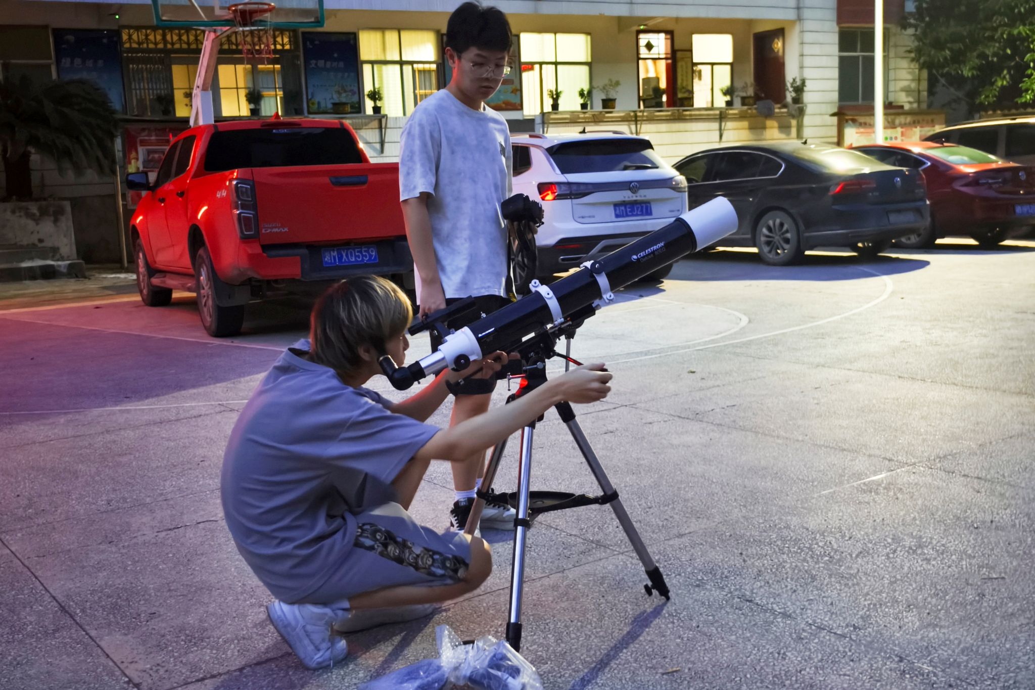 实践团成员调试望远镜