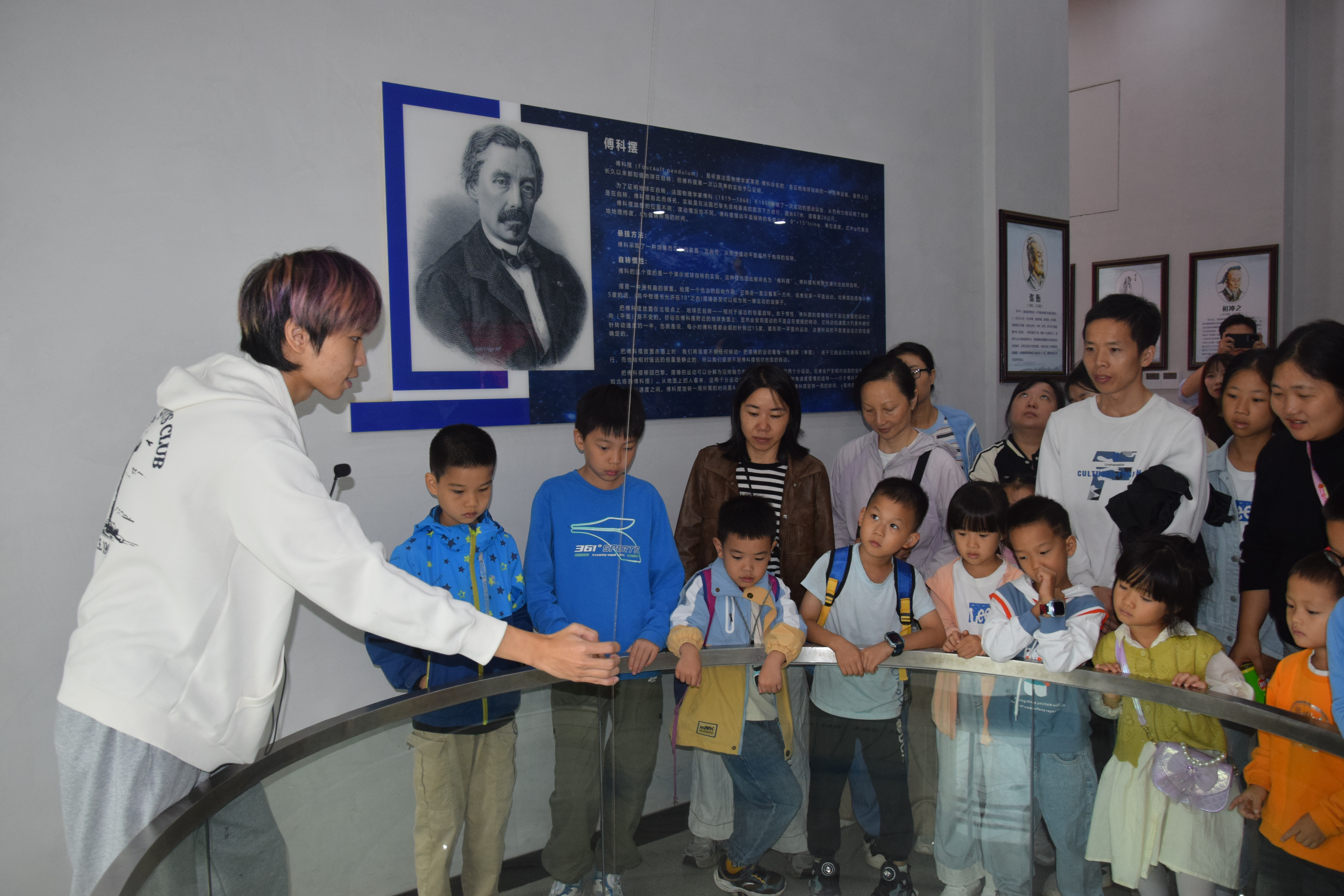在天文协会指导老师的带领下,协会成员依托全国科普教育基地——伟德国际victor1946天文馆,开展了丰富多彩的科普活动。活动现场,讲解员们分批次引导参观者游览六至九楼展厅,专业讲解了太阳系、星云星系、宇宙简史等天文知识。参与者还参观了馆内40公分口径光学天文望远镜,亲身体验天文观测的魅力。