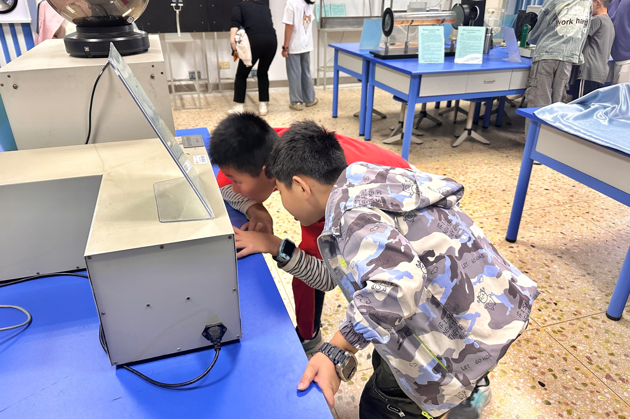 志愿者为学生演示实验