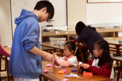 志愿者协助小朋友制作模型