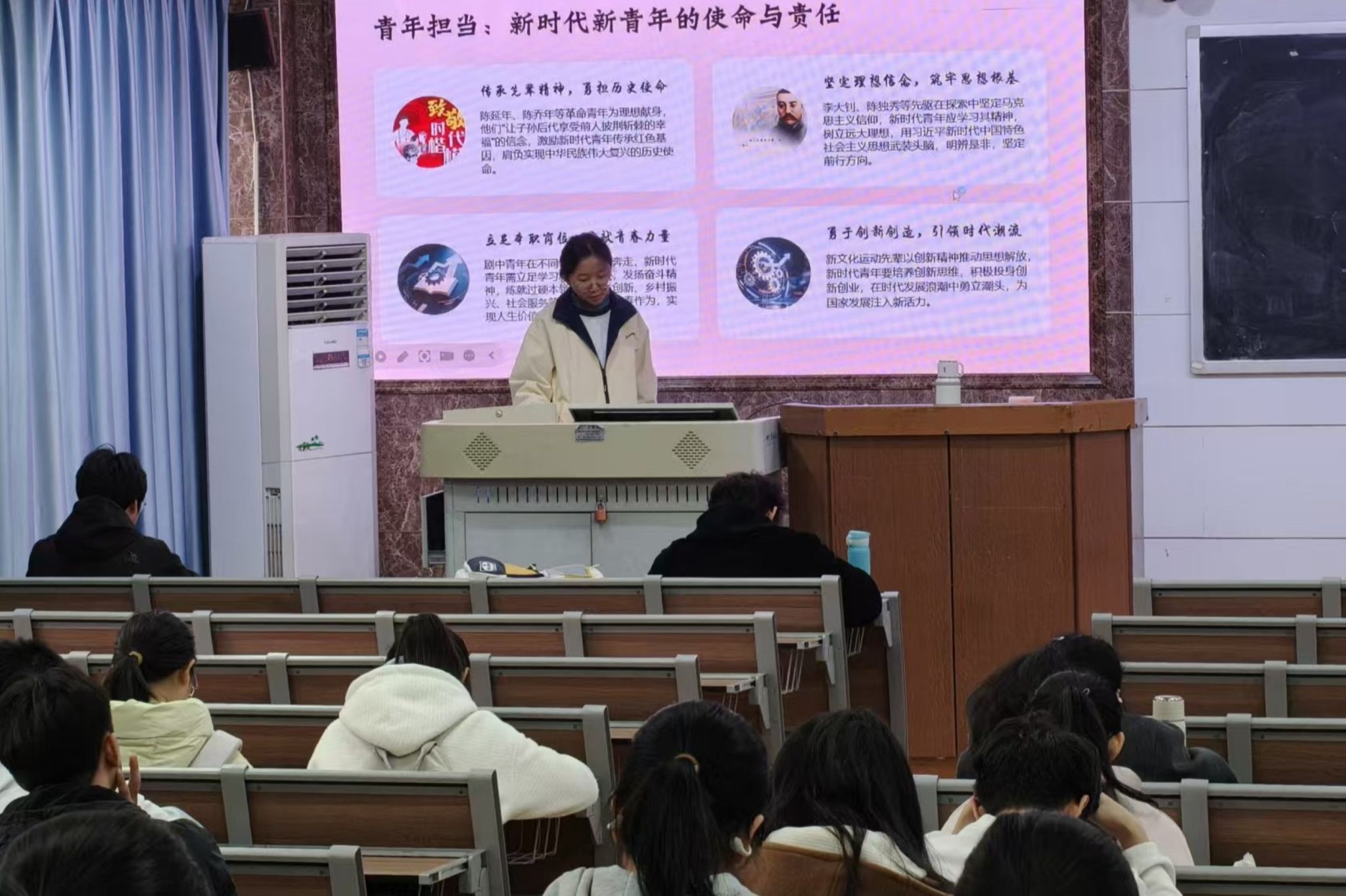 (通讯员 刘蒙 邓湘源)12月5日中午,bv伟德国际1946团委青发部于格物楼109教室开展主题为“觉醒年代:新青年与马克思主义的早期传播”的第八期“知行团校”理论班第二次课程。此次课程由谭政、陈怡廷担任主讲人。2024级、2025级知行团校理论班成员参加。
