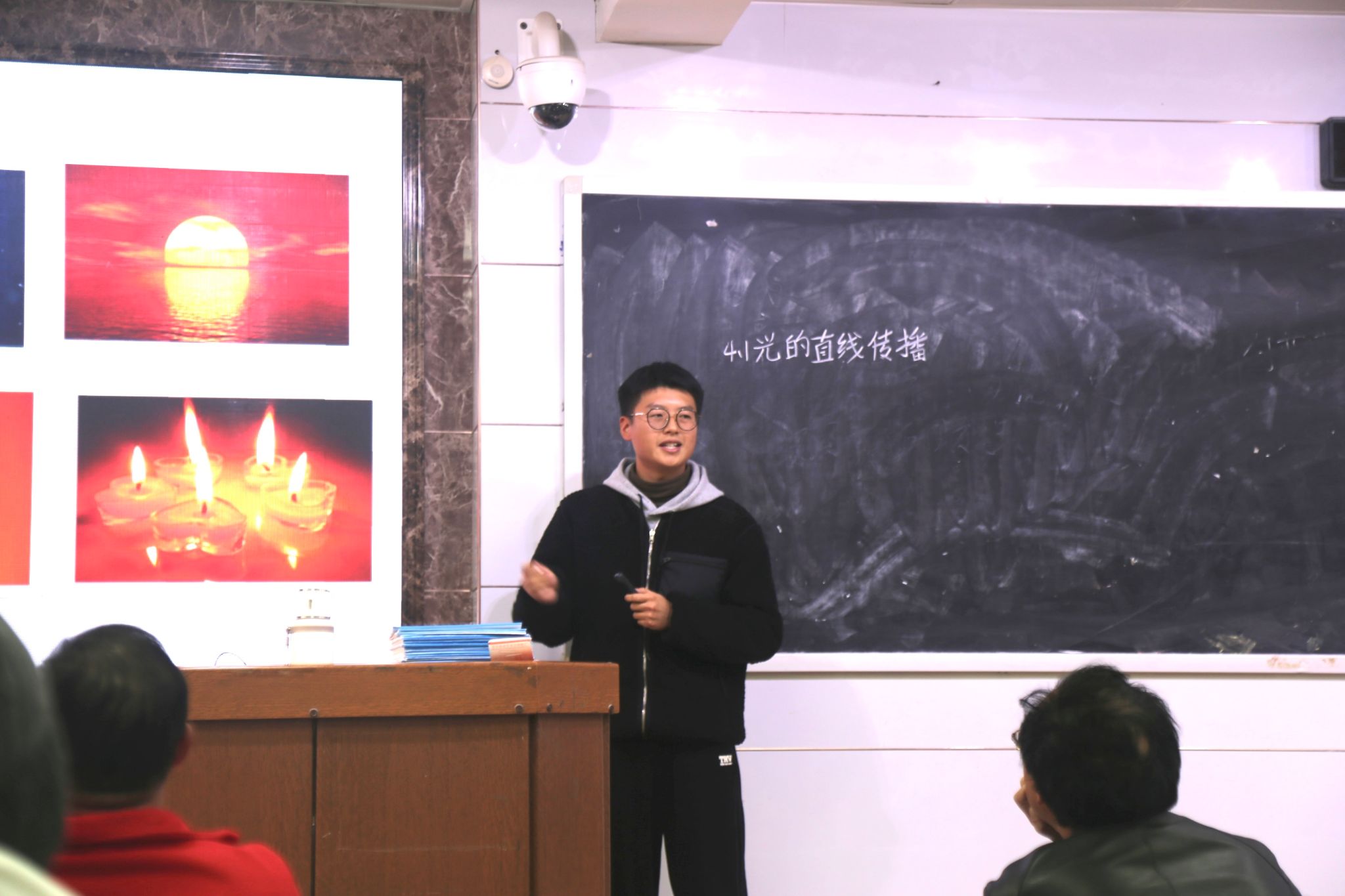 各实习队队长按抽签顺序依次进行实习队工作汇报。实习队队长从队伍概况、实习内容、成果与收获、总结与反思四个方面,就实习期间的工作进展以及任务落实情况进行了总结。在汇报课片段展示环节中,实习生代表按抽签顺序依次进行片段教学展示。实习生代表在有限的时间内,利用板书与PPT结合、理论与实验结合的方式对物理知识进行讲解,展现了物电院学子扎实的学风以及认真的教学风范。各评委对实习生代表的片段教学进行点评与总结,钟显辉鼓励在场同学们不断磨练能力、砥砺品德,时刻牢记教育初心。