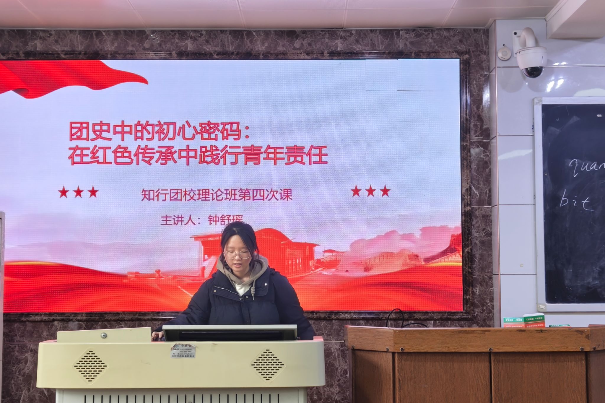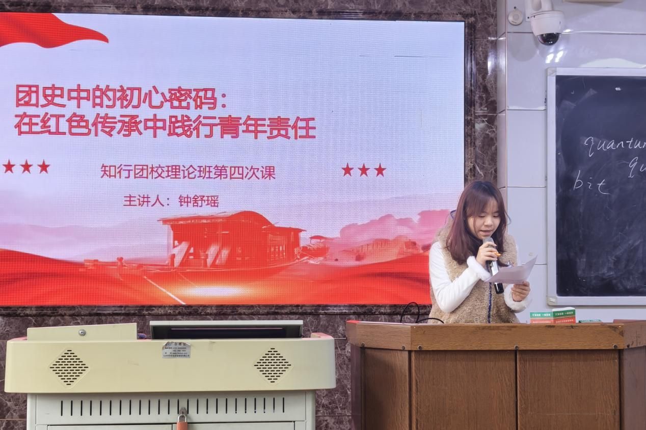 (通讯员惠涵)3月27日中午,bv伟德国际1946团委青发部于格物楼109教室组织开展第八期知行团校第四次理论班课程。此次课程由刘洁琼主持,2024级钟舒瑶担任主讲人,理论班全体学员到场学习。