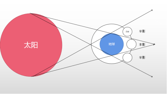 那月食究竟是什么原因导致的呢? 众所周知,地球围绕着太阳转,月球又围绕着地球转,而月球本身必须要做个日光浴才有可能有光,所以当太阳、地球、月球三者恰好在同一条直线上,而地球又处在太阳与月球之间,这时胖胖的地球挡住了月亮晒太阳,便产生了月食,仿佛月亮被我们地球吃了一样。如果地球并不能完全遮挡太阳散发出来的光线,这时候就有本影区和半影区之分。