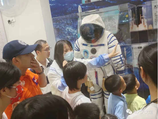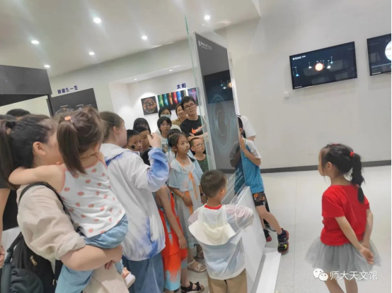 在六楼我们的讲解员由基本的天文知识切入,结合图片与模型,深入浅出地为参观者们讲述了中国古代天文发展史,恒星、黑洞等天体有关内容,和我国的航天发展历程与优秀科研成果。小朋友们听的很认真,一声声的发问“恒星的生命是永恒的吗?”,“那如果宇航员进入黑洞会变成什么呢?”成了天文馆最悦耳的声音。