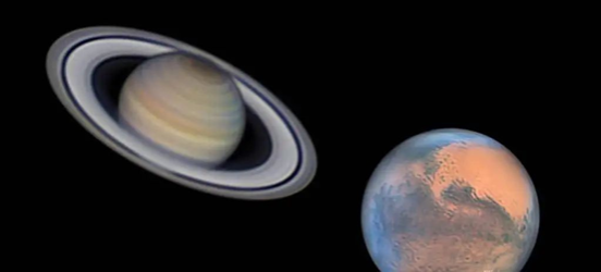 2024年4月11日11时火星合土星(视赤经23h06m17s),地心所见火星在土星以北0.48度之处。日出前可见于东偏南方低空。火星视星等1.2等,土星为1.2等。