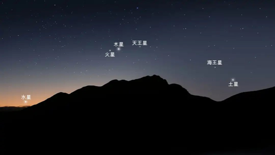 清晨,六颗行星(水星、火星、木星、天王星、海王星和土星)将在天空中连珠。