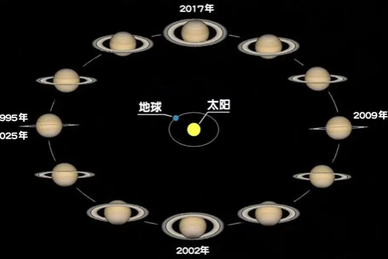 土星环的厚度只有几十到几百米左右。如果当太阳光从环的正侧面照射进来,从很远的地球上就看不到光环了。这样的现象大约每15年发生一次,相当于土星公转周期的一半。早在1612年,意大利科学家伽利略就首次观测到土星环“消失”现象。
