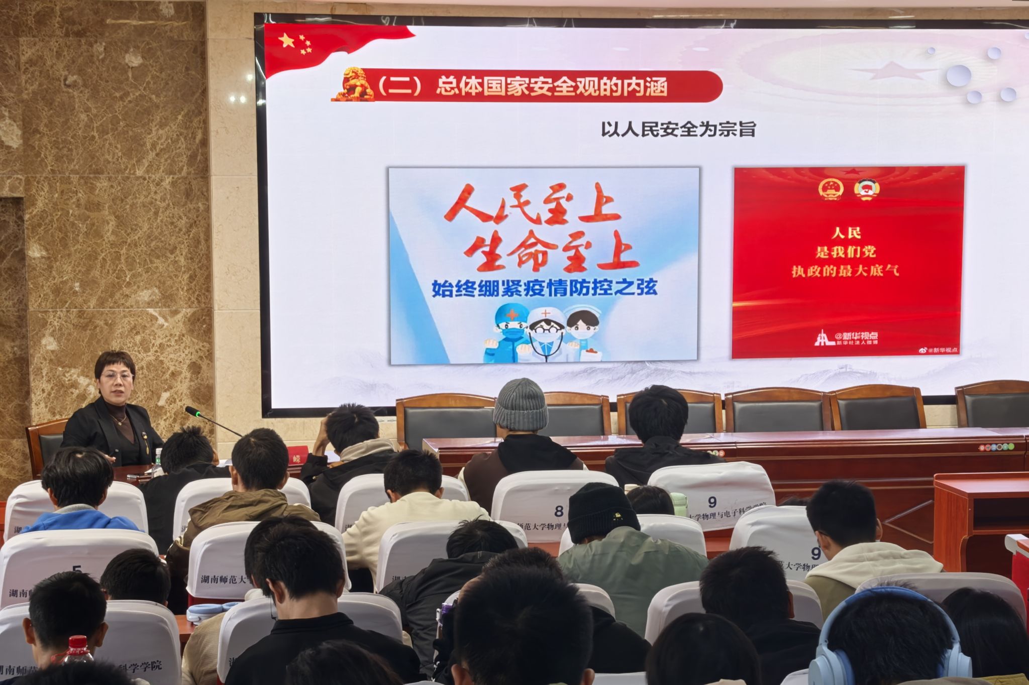 (通讯员 刘子佳 谭烨茜)11月20日下午,bv伟德国际1946党委书记罗嵘于格物楼509报告厅为2024级本科生讲授《形势与政策》课程,课程主题为“全面深入贯彻落实总体国家安全观”,2024级辅导员戴文纯担任主持人。