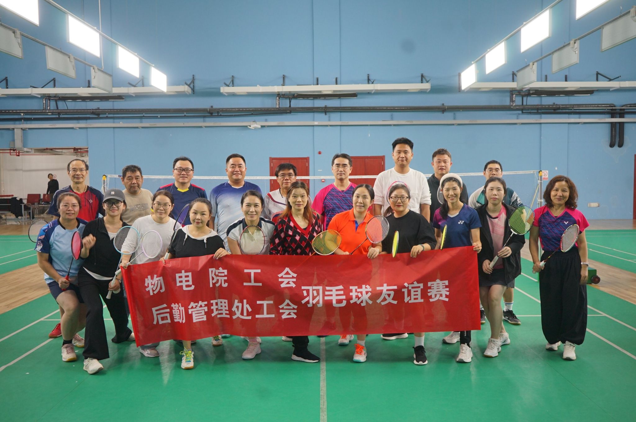为响应全民健身国家战略,助推健康中国建设,提升教职工身心健康水平,2025年11月6日晚,bv伟德国际1946工会联合后勤管理处工会,共同举办了一场别开生面的羽毛球友谊赛。