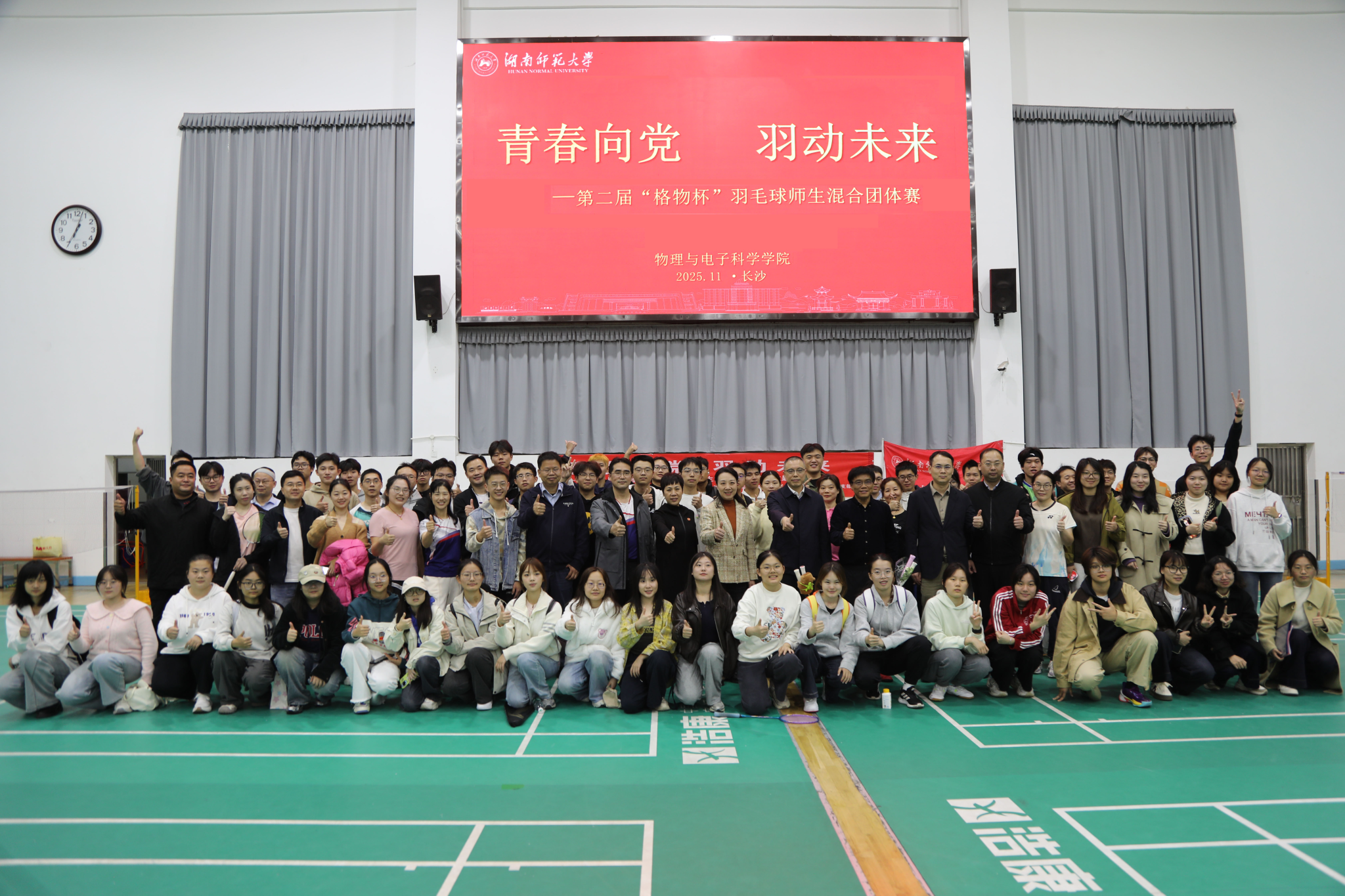 为深入实践习近平总书记关于建设体育强国的重要讲话精神,增进师生情谊,弘扬体育精神,11月13日晚,bv伟德国际1946工会成功举办第二届“格物杯”羽毛球师生混合团体赛。校工会常务副主席余英、院长刘红荣、院党委书记罗嵘等领导出席活动。院党委副书记郑智、院工会主席吴普训分别主持比赛开闭幕式。