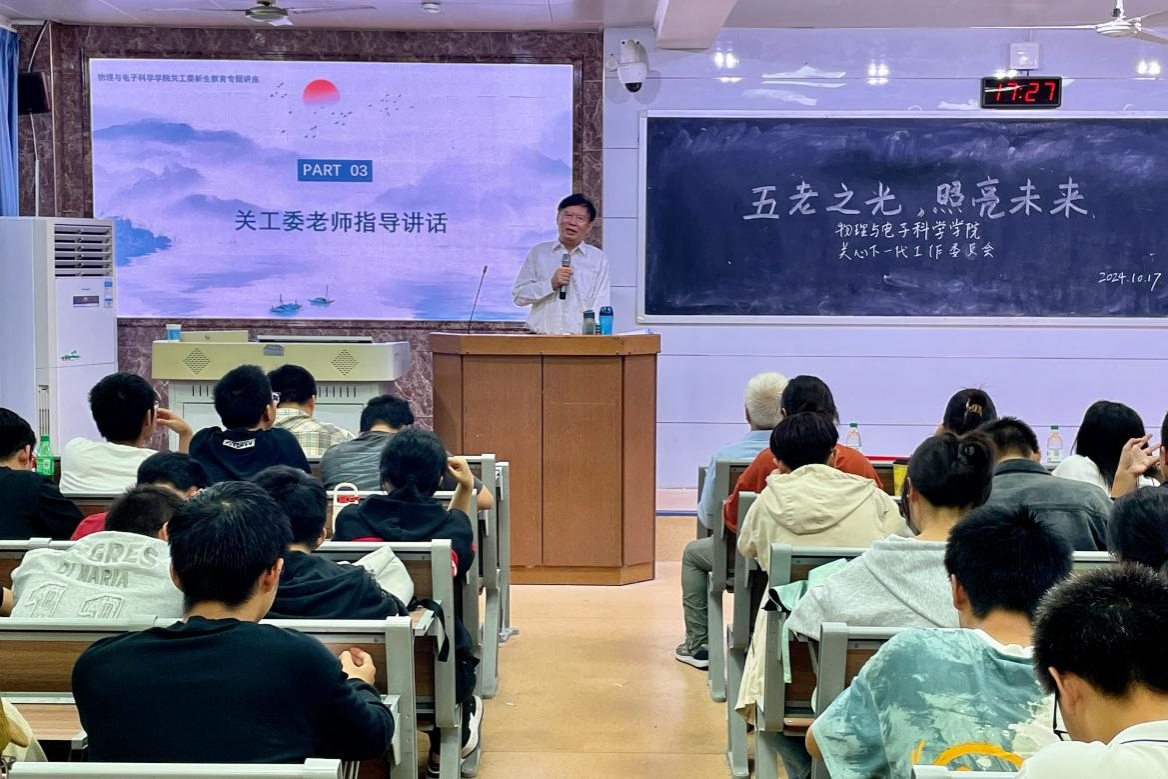 (通讯员 黄檬 张婧怡 谭烨茜)10月17日下午,bv伟德国际1946关工委于格物楼109阶梯教室开展“五老之光,照亮未来”新生教育主题讲座。院关工委唐咸林、海文华、周光辉老师担任主讲人,院党委副书记郭铭伟,学工办全体辅导员出席讲座。