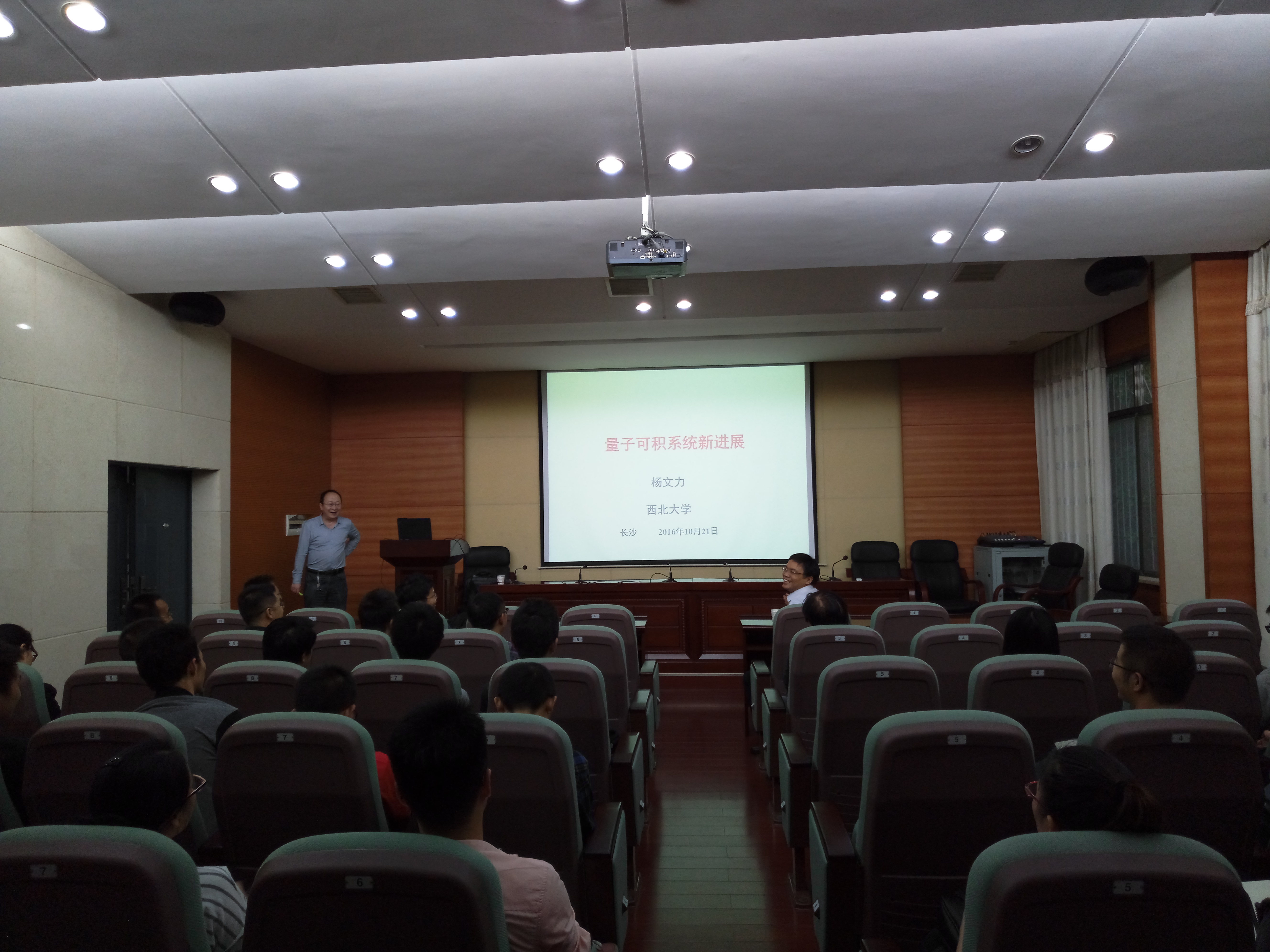 10月21日下午,西北大学杨文力教授为我院师生带来了题为“量子可积系统新进展”的学术报告,报告由我院余洪伟教授主持。