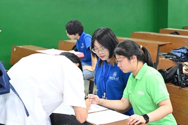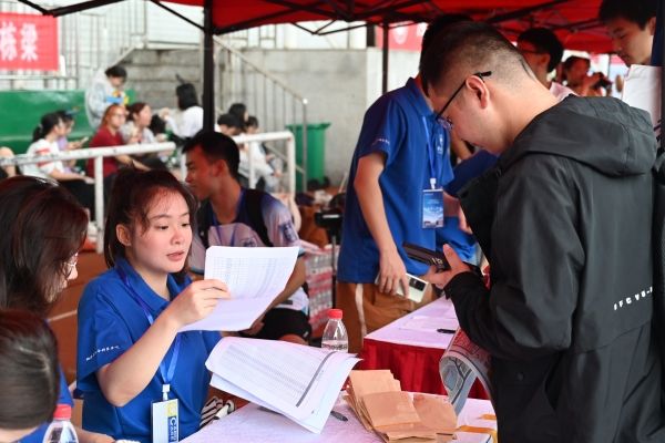 为确保迎新工作顺利进行,保障新生们安全到达报到点,学院于北院格物楼、左家垅公交车站设立两处迎新指引点,安排迎新志愿者及时引导新生前往报到点。新生辅导员滕茂、部分新生班导及志愿者们于体育学院教学楼201教室收集办理入学材料并发放军训服。报到组志愿者们在南院田径场迎新点进行扫码迎新、发放校园卡、办理绿色通道等工作,并赠与每位新生学院定制迎新文创。行李搬运组的志愿者们充分发扬不怕苦不怕累的精神,天气虽然变化莫测,他们却依旧耐心热情地为新生答疑解惑、搬运行李。迎新志愿者分工明确,各司其职,井然有序地进行着迎新活动。
