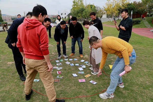 活动的第一项是“极速60秒”趣味团队比赛。青年教师们分成四个小组,通过细心观察30张卡片,从各方面推测图案的含义,并进行组内讨论。各小组通过反复尝试和排除,确定卡片所代表的数字。最终,“上夸克队”最先按数字大小整理出卡片的顺序,从而赢得了比赛。在此过程中,教师们充分利用团队智慧,从纷繁的表象中整理线索,体验到了推理的乐趣。