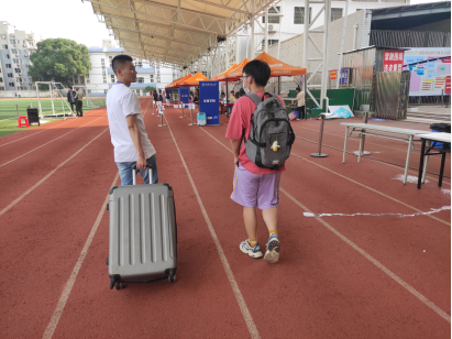 秋高气爽,风轻云淡。9月18日—19日,伟德国际victor1946物电院迎来了2021级研究生新生。迎新点设立在伟德国际victor1946体育学院田径场,新生报到工作由学院科研办组织,院研究生会以及志愿者执行。期间,院党委书记康洪、科研办主任唐湘云老师来到迎新现场指导工作,慰问参与迎新的工作人员和志愿者,并向前来报到的新生表示欢迎和问候。根据国家疫情防控要求,家长不能进入校区内,因此,学院特意安排了二十多名志愿者来帮助新生。志愿者们充分发扬不怕苦不怕累的精神,顶着烈日,耐心热情地为新生答疑解惑、搬运行李、指引大家进入寝室,报到过程高效流畅。