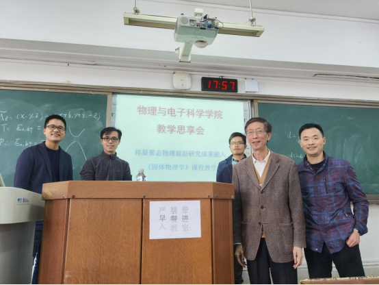 在固体物理教学默默耕耘二十多年的老教师周光辉教授、湖南大学李福祥教授、我校“固体物理与材料”教学团队成员刘自然副教授、教师教育学院(教师教学发展中心)教师教学能力发展科科长廖志华及学院部分师生参加此次会议。