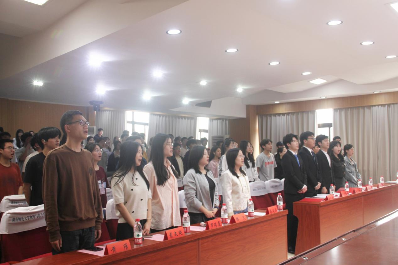 全体起立奏唱共青团团歌后,大会正式开始。田祺睿对学生干部考核相关事项进行简单介绍,本次评议将考核内容设置为德、能、勤、绩、学五个方面,由参会学生代表评定。
