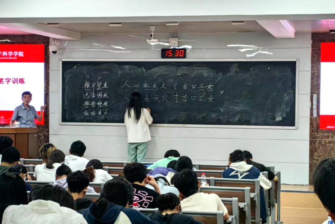 2025年5月15日,bv伟德国际1946(以下简称物电院)在理学院格物楼 109举行了““三字一话’系列课程:硬笔字训练”培训大会(以下简称大会),本次大会由物电院周三庆老师主讲,23级、24级本科生积极与会。