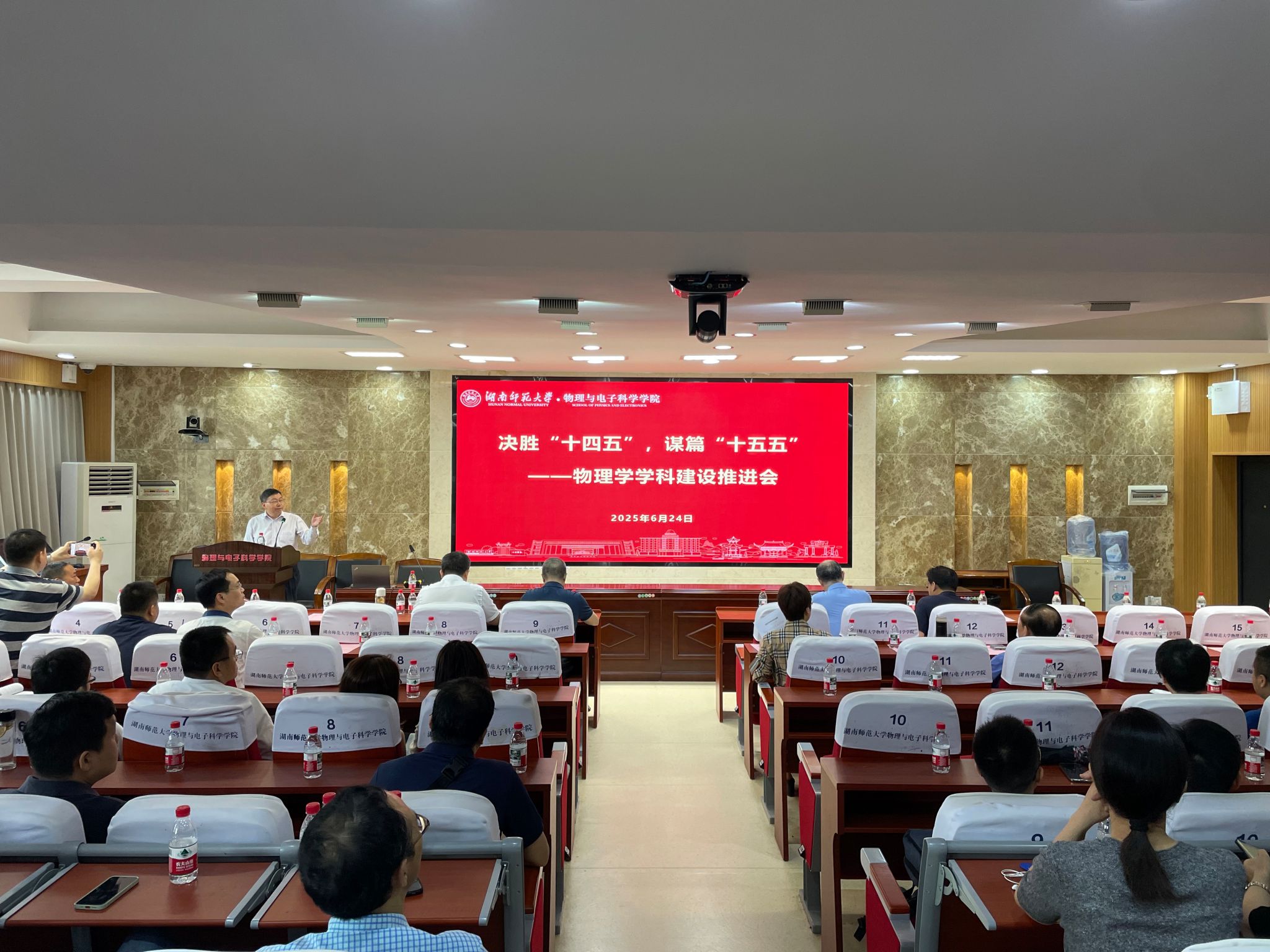 为深入推进学科建设,全面提升学院学科水平,6月24日上午,我院在格物楼509报告厅召开了主题为"决胜‘十四五’,谋篇‘十五五’"的学科建设推进会。会议由物理学学科带头人匡乐满教授主持。学校副校长杨震,发展规划与学科建设处、教务处、研究生院、科学技术处、财务处、资产与实验室管理处等职能部门领导,以及全院教师共同出席会议。