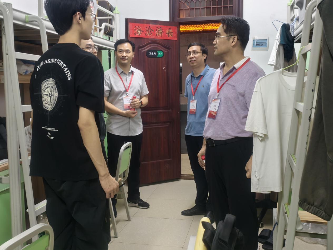 9月14日晚,院党委书记罗嵘、副院长欧阳和副院长廖洁桥带领研究生办老师、研究生兼职辅导员和研究生会干部前往新生宿舍进行夜间走访,了解新生入学适应情况。面对新生提出的各类问题,领导和老师们耐心解答,并重点强调安全教育,要求新生时刻绷紧安全弦,增强防范意识,严格遵守学校安全规定,共同维护寝室安全稳定。