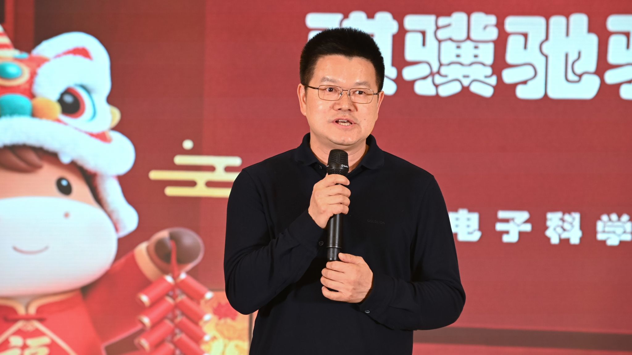 湖南三书礼文化发展有限公司总经理苏文华校友也带来了真挚的分享。他感慨道,是物电学院的培养为自己的创业之路奠定了坚实基础,多年来始终感恩母校的教诲与关怀。他对学院给予的信任与支持表示感谢,期待未来能与学院在更多领域深化校企合作,实现互利共赢,并送上新春祝福。