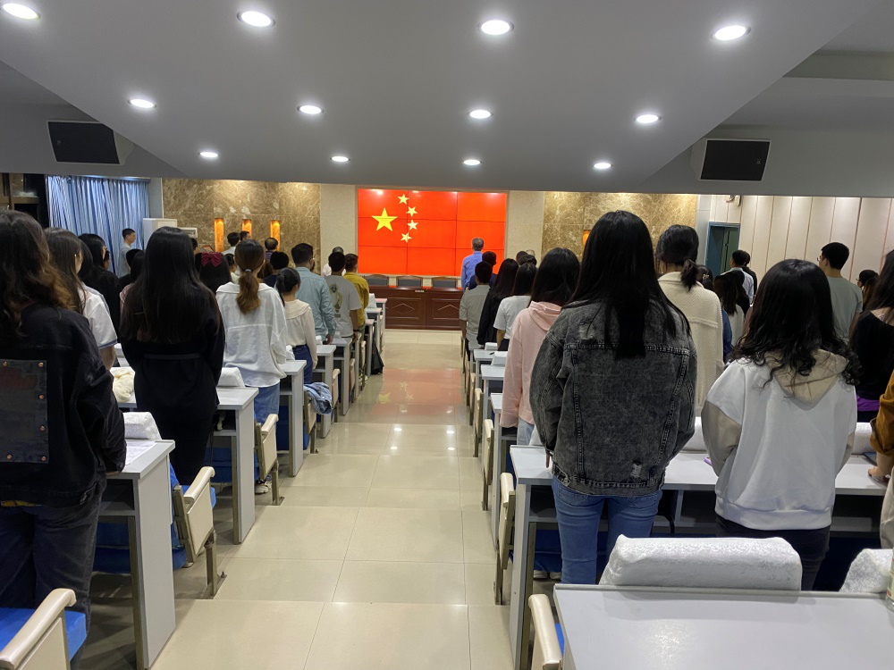 会议伊始,欧阳钢副院长为同学们介绍了出席会议的领导和老师,随后全体师生起立,唱国歌。