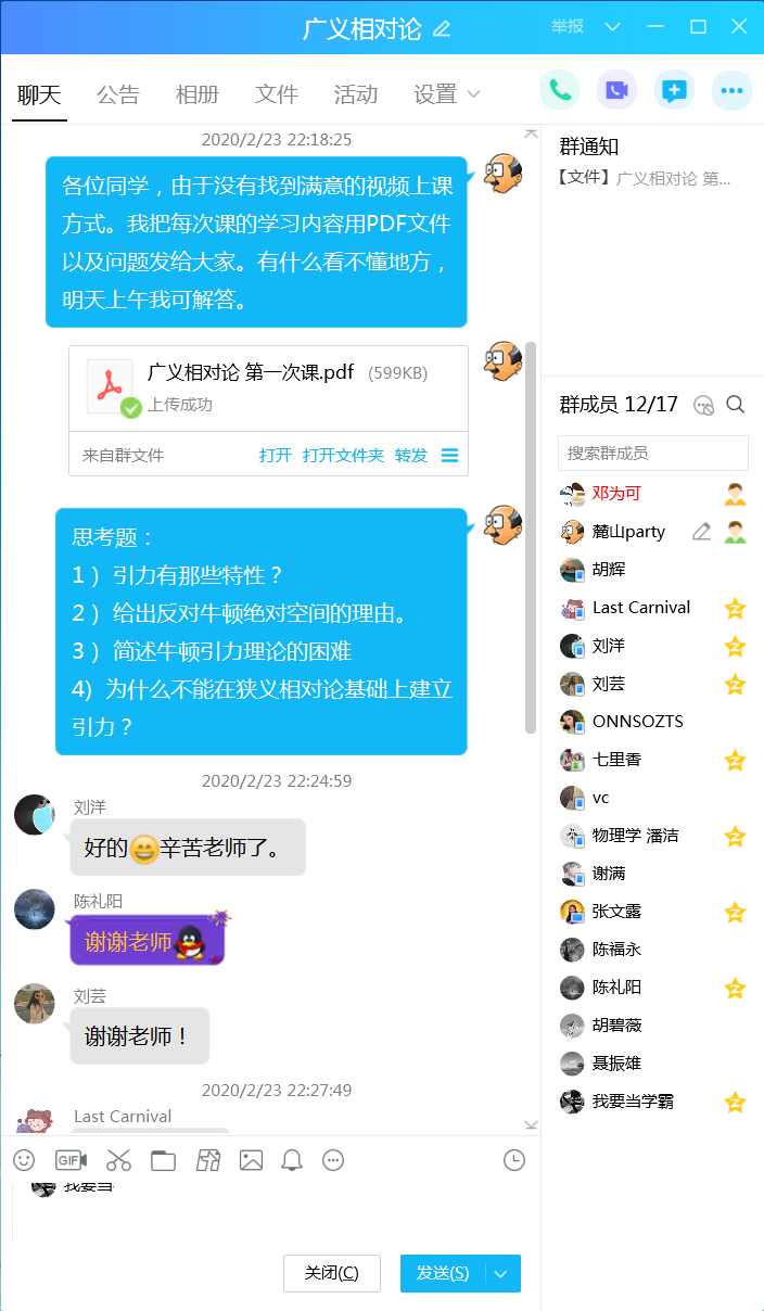 欧阳钢教授使用腾讯会议平台给硕、博士研究生讲授薄膜物理课程