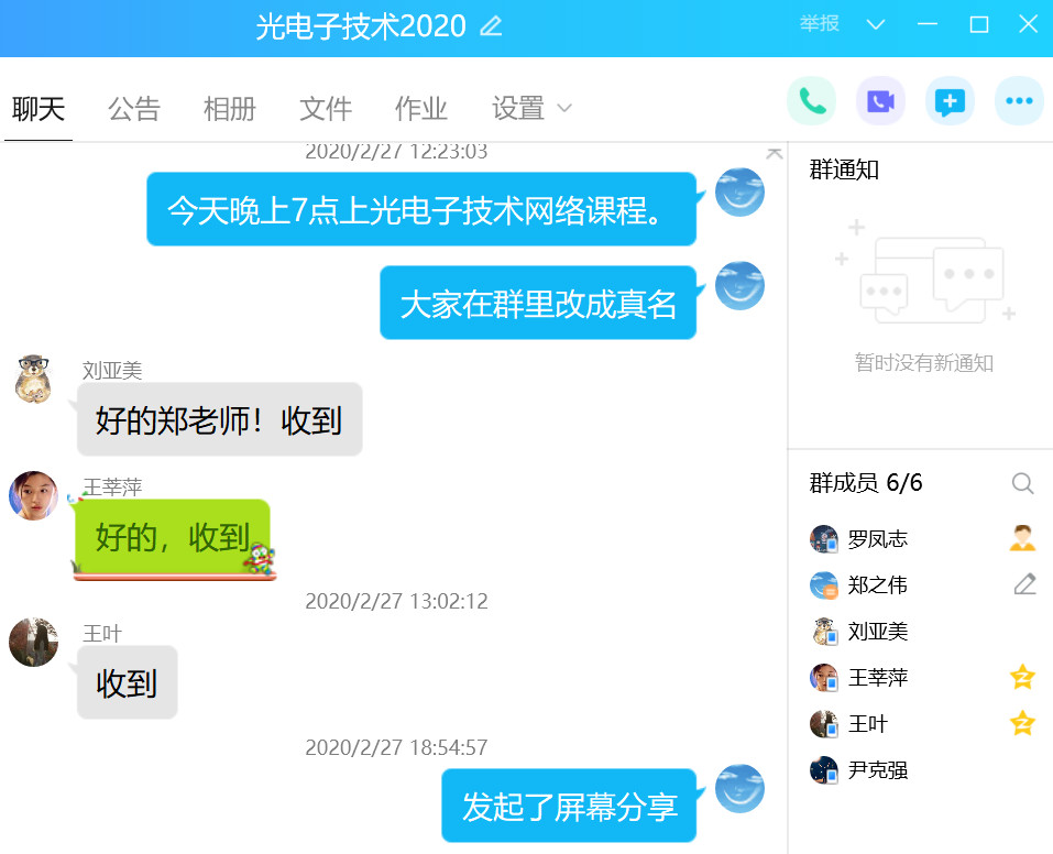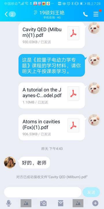 黄金凤副教授使用QQ软件给研究生讲授腔量子电动力学专题课程