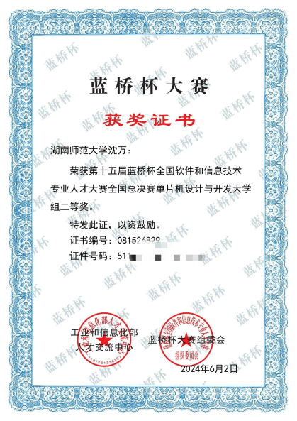 近期,我院电子专业学生积极参加多项国家级和省级学科竞赛,先后在第十五届蓝桥杯全国软件和信息技术专业人才大赛总决赛、第十七届中国大学生计算机设计大赛中南地区赛、全国总决赛和2024年湖南省大学生电子设计竞赛中取得了优异的成绩,共获12项奖励,其中国家二等奖3项、三等奖3项,湖南省一等奖1项、二等奖1项、三等奖4项。